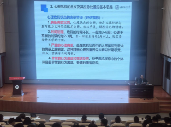 下午,雷鸣副主任为全校辅导员、心理委员等队伍开展了两场培训。第一场是面向全校辅导员以及班主任代表,以“辅导员开展心理危机工作的方法与策略”为主题进行授课,从辅导员开展心理健康教育工作的职责与任务、心理危机的含义及应急处理基本思路、危机处置的流程方法与注意事项等三个方面进行讲解,结合现实的案例讲工作思路、工作方法和策略,让辅导员们受益匪浅。