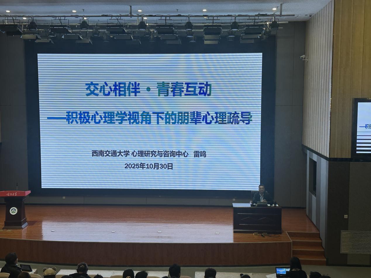 副主任、四川省心理健康教育名师工作室(“正心”工作室)主持人雷鸣应邀为喀什大学心理健康教育专兼职教师、辅导员、心理委员、宿舍长等人员开展讲座和培训,助力提升喀什大学心理健康工作水平。培训和讲座由喀什大学党委学生工作部副部长阿的勒·扎克主持。