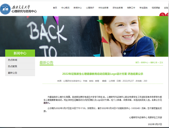新生心理健康教育启动日期及Logo设计方案征集大赛圆满结束
