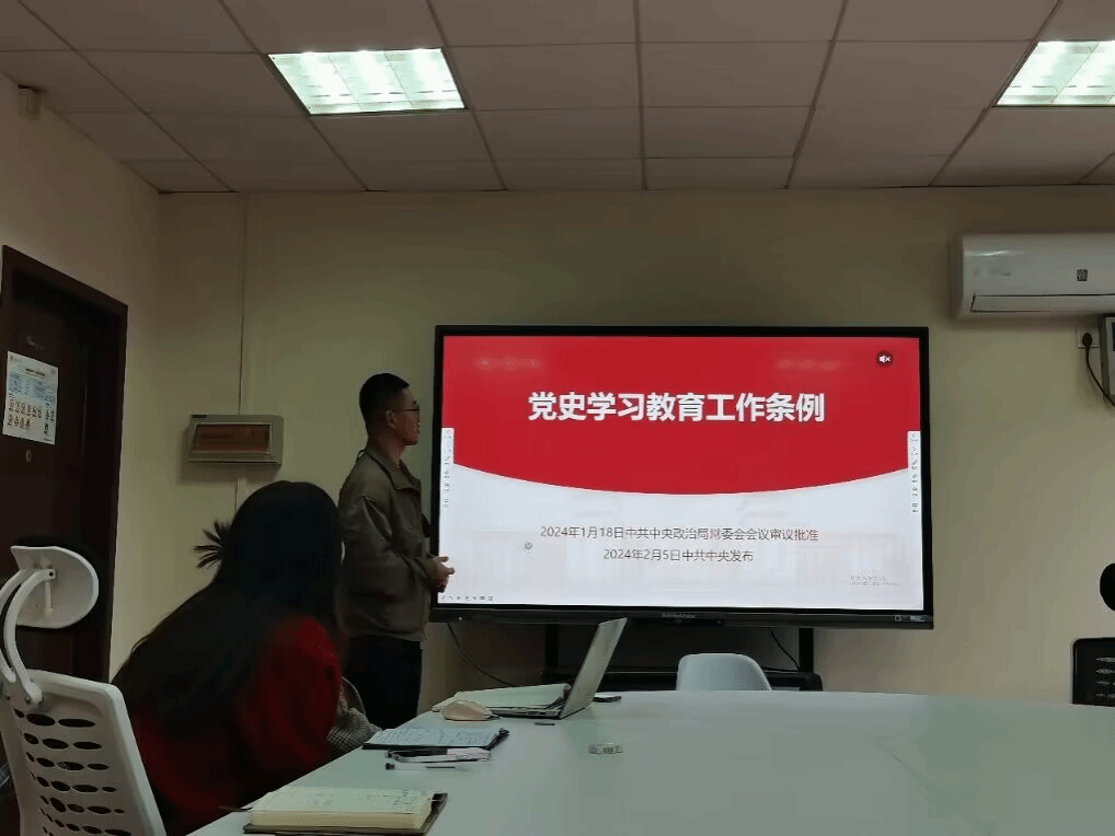 郭宇亮同志带领学习党史教育工作条例,通过PPT的展示,让同志们直观的学习和了解了党史学习教育的相关工作条例。提到党史学习教育工作的主要任务是:学史明理,学史增信,学史崇德,学史力行。同志们对党史学习教育的工作理解更加透彻。