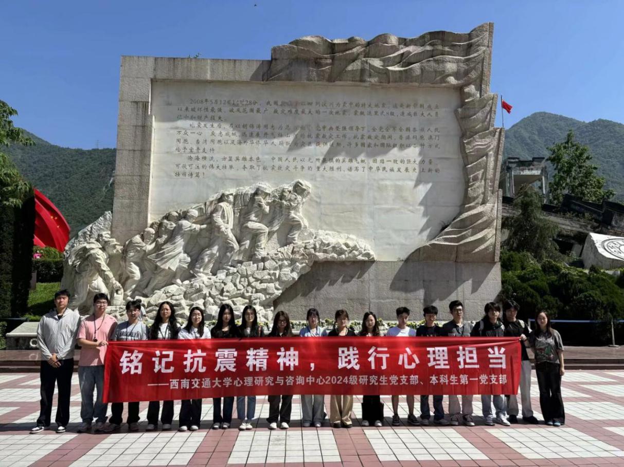 团委书记樊菊的带领下,怀着崇敬与哀思之情前往“5·12”汶川特大地震映秀震中纪念馆开展主题党日活动,追寻抗震救灾精神,同时发挥心理学子的力量,为灾后幸存的人尽一点绵薄之力。