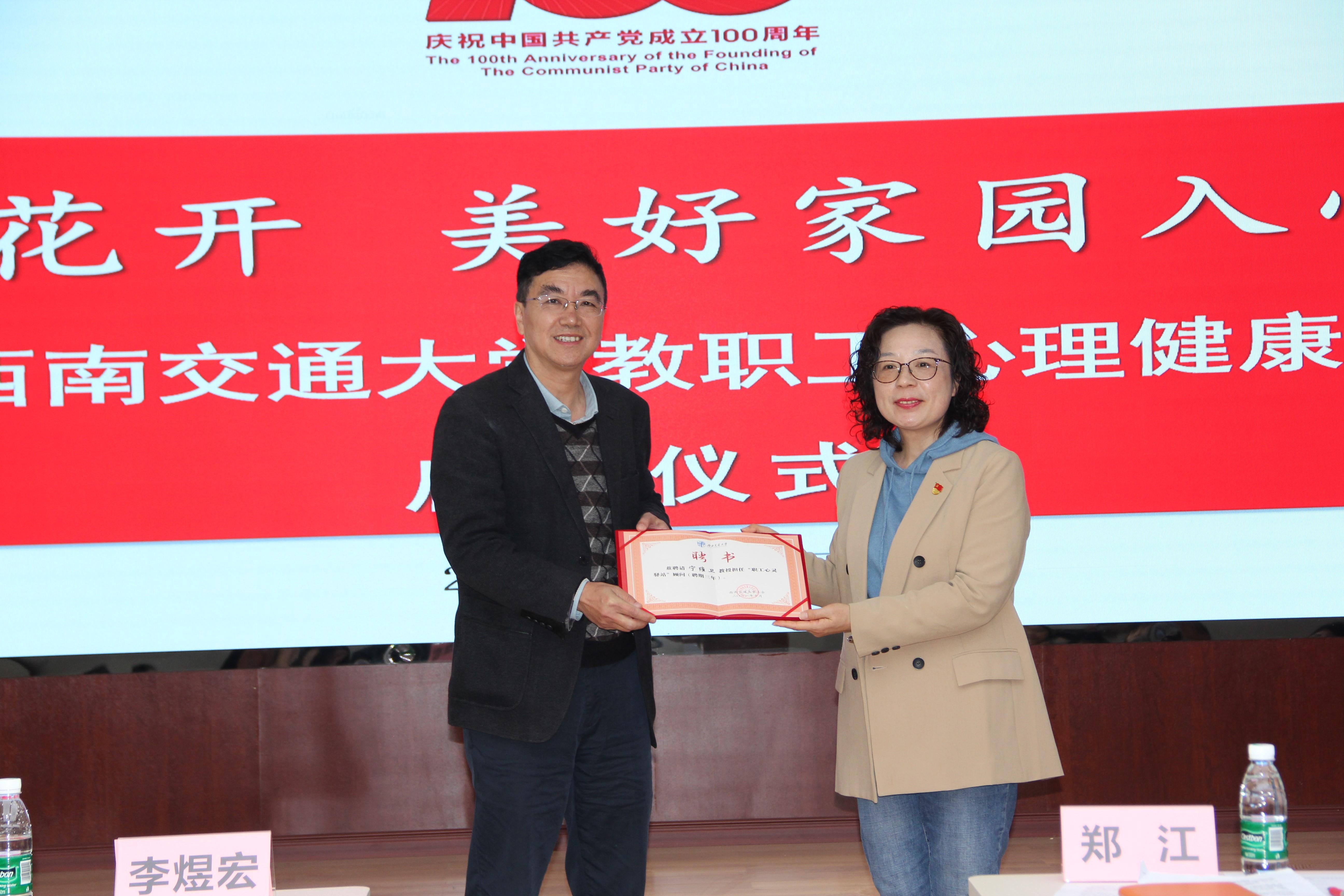 随后,郑江主席向宁维卫教授颁发了“职工心灵驿站”顾问聘书。宁维卫教授是教育部新一届高校学生心理健康教育专家指导委员会副秘书长、四川省心理学类教学指导委员会主任委员、教育部全国高校心理健康教育与咨询示范午夜av