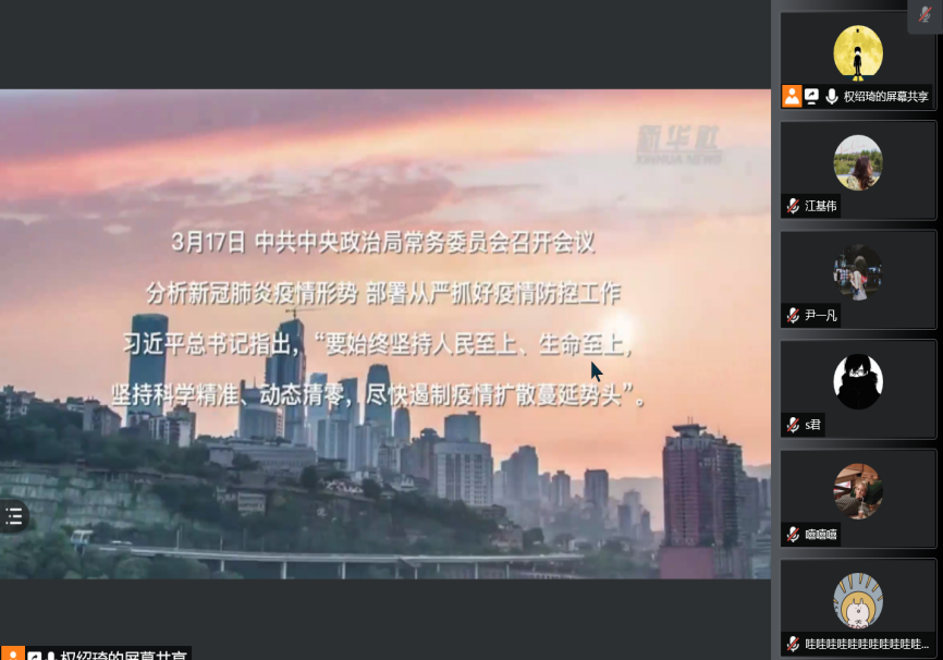 研究生第一党支部于4月13日下午集体进行《“始终坚持人民至上、生命至上”——习近平总书记指挥打好统筹疫情防控和经济社会发展之战述评》的线上学习。