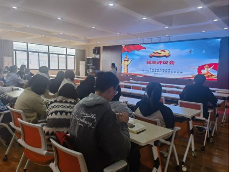本科学生党支部在X5501召开支部大会,会议共两项议程,首先由杨慧茹同志主持,开展“团结奋斗,创造新的伟业”主题党日活动,主要学习两会相关内容和两会精神;然后由党支部副书记刘小婵主持民主评议会,进行党员的民主评议相关事宜。