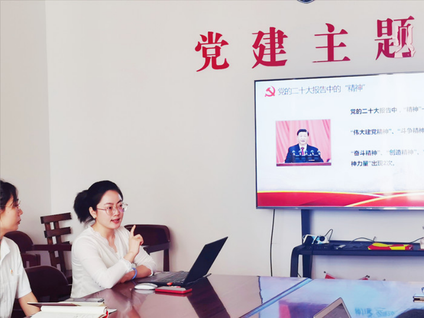 胡海利同志围绕二十大报告中的精神为支部党员上了一堂以“弘扬伟大精神,创造出彩人生”为主题的微党课,简述了二十大报告中出现的“精神”,详述了“中国共产党人精神谱系”,带领支部同志共同学习了长征精神、抗美援朝精神、抗震救灾精神、脱贫攻坚精神,引导广大青年奋发向上。