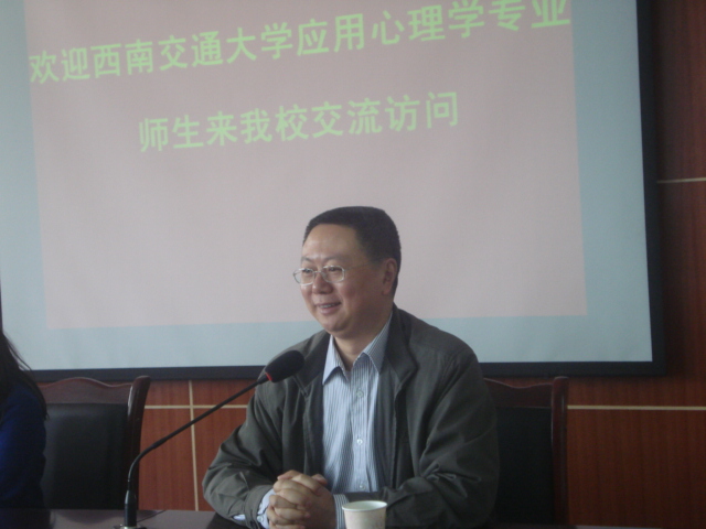 师生简要介绍了西南科大应用心理学专业的开展状况,自2006年招生开始,每年约招收60名新生,如今西南科大应用心理学系已有240多名学生。西南科大应用心理学系隶属法学院,将心理学与法学紧密结合,突出犯罪心理学研究优势,积极与绵阳市警察局、监狱等展开合作,进行警察心理干预,研究犯罪心理学。学院还建立了心理学实验基地,与绵阳市公检法系统,以及各中小学展开合作。进一步建立心理学研究平台,争取设立硕士点,促进心理学的学科发展是专业未来的发展方向。