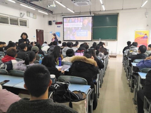 Mr. Ke first introduced Mrs. Zhou and emphasized the importance of the lecture to the students before the lecture and hoped that the students could gain something from the lecture. Mrs. Zhou introduced the basic points of workplace communication from two aspects at the beginning of the lecture: “the importance of communication” and “what is communication and how to communicate in the workplace”. Zhou quoted many examples based on her own experience and famous people’s stories in the process, which made the explanation vivid and convincing.