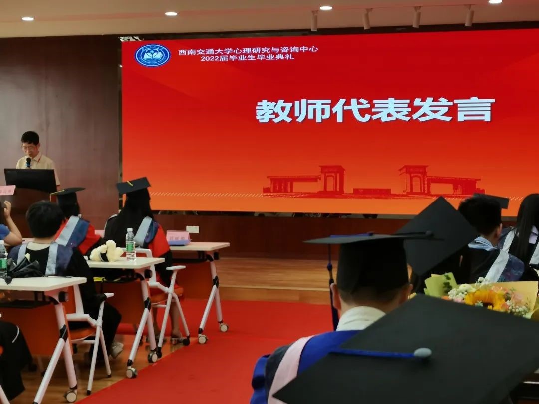 We will adhere to the motto of SWJTU, which is "Diligence, Ambition, Decisiveness, and Loyalty”, and practice the psychological philosophy of "Loving yourself well, respecting and embracing life"; we will live up to the teachings of our teachers, the cultivation of our alma mater, and the expectations of our parents and our country; we will try to be the best of ourselves, to be a happy person, to add glory to our alma mater, and to add splendor to the Chinese dream.