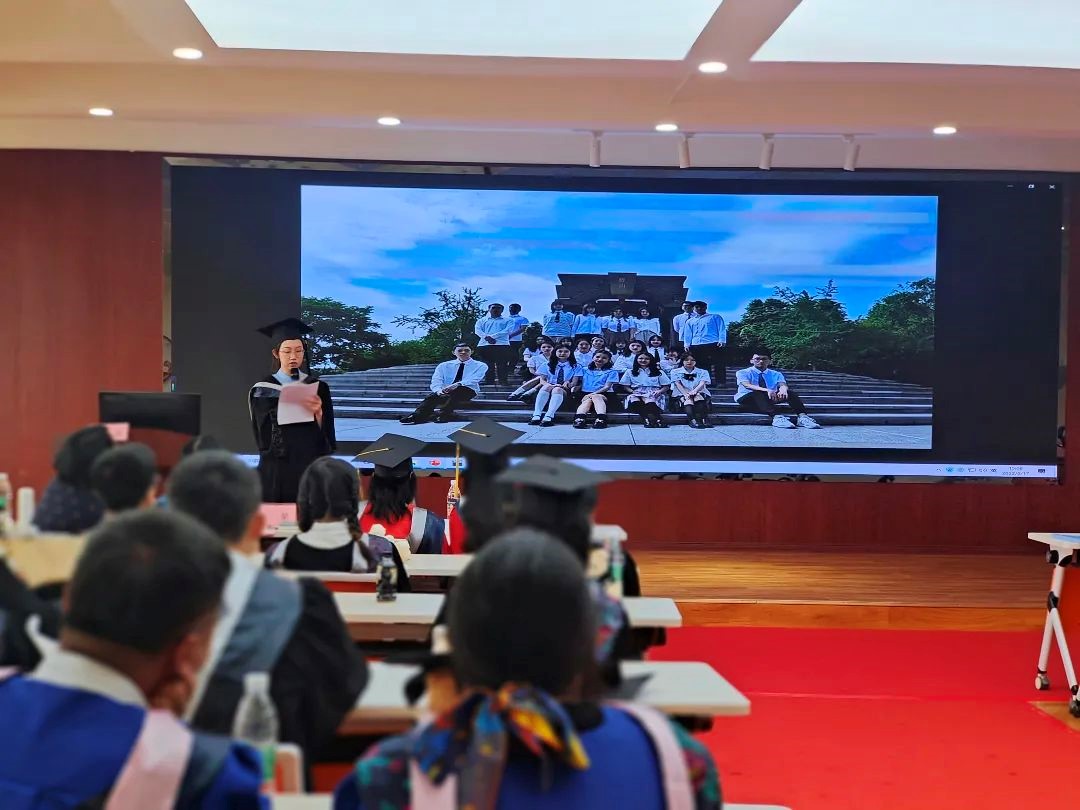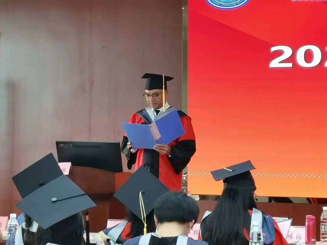 Here, two teacher representatives of the PRCC, Mr. Fei Weibao and Madam Feng Guo, spoke on behalf of all the teachers of the PRCC. Mr. Fei expressed his wishes and expectations for the graduates, and Madam Feng’s humorous speech added a strong touch to the graduation ceremony.