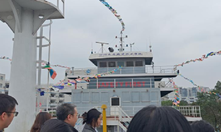队伍们先参观了学院的教学专用船舰。科普讲解员为大家介绍了轮船中主要的几个科普要点,比如鼻艏、散货舱、抛锚、驾驶室等。讲解员用生动有趣的语言将轮船相关知识化繁为简,各位代表被讲解员专业的科普所深深吸引,同时学习到不少有关科普的技巧。