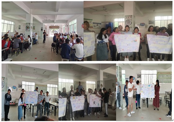 心理午夜av 服务队老师在下午的工作分两部分进行:一是对黄琅中学青年教师的团体心理辅导和对黄琅中学的心理健康教育队伍进行专业培训,二是到黄琅中学心理辅导室进行现场指导并讨论黄琅中学5.25心理健康教育活动方案。工作开展也分为两组,一组由杨兴鹏与冯缙两位老师对黄琅中学中青年教师开展团建心理辅导活动。两位老师通过“心情故事”的绘画治疗技术,一是帮助老师们表达情绪、纾解压力,善于发现和应用积极情绪;二是运用团体辅导技术,加强教师们的沟通与合作,以增强团队凝聚力和战斗力。