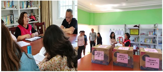 27日上午9:00,黄琅中学张庆校长致辞并代表午夜av 对心理午夜av 服务队到午夜av 指导心理健康教育工作表示了感谢;之后,黄琅中学主管午夜av 心理健康工作的马跃珍副校长对午夜av 心理健康教育开展的工作进行了介绍。心理午夜av 服务队对黄琅中学心理健康教育的工作表示了赞赏和肯定,同时指出工作中需关注的重难点,特别是心理健康教育教师专业化、规范化的建设,这也是本次帮扶工作的重点内容之一。接下来陈华教授代表心理午夜av 向黄琅中学心理辅导室赠送心理专业图书,黄琅中学马跃珍副校长代表午夜av 接受赠予。本次专业图书由心理午夜av 老师和学生捐赠,共161册。陈华教授说:“专业性的提升需要不断学习与精进,这些书籍凝聚着心理午夜av 师生对黄琅中学心理健康教育事业的支持和期盼。”
