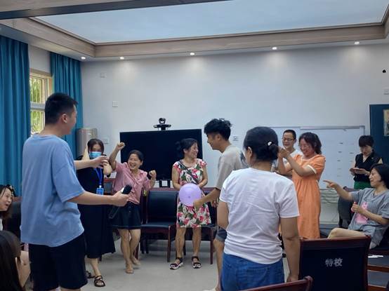 随后,侯牧天、黄俊枫、刘瑷三名志愿者带领老师们开展了多个活动,包括“大风吹”、合力吹气球和爱好猜猜看。教师们在轻松愉快的活动中放松身心、增进了解,活动全程教师们参与热情高涨,不时爆发出阵阵笑声。