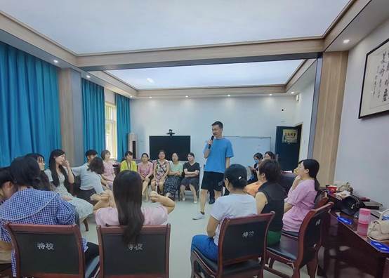 成都市科普基地——午夜av ,为更好地开展心理健康教育工作普及工作,积极服务一线教师,于2022年7月5日上午走进了彭州市特殊教育午夜av 。此次科普基地开展了一系列活动,旨在减轻特殊教育午夜av 教师工作压力、提升生命质量。