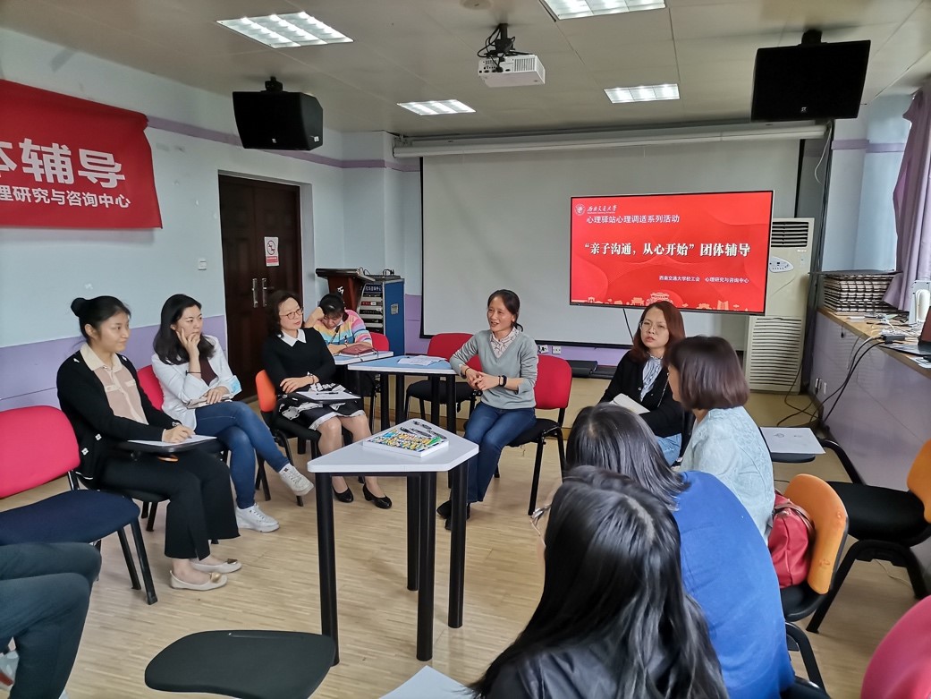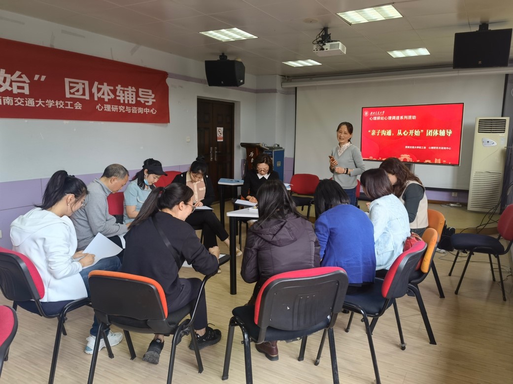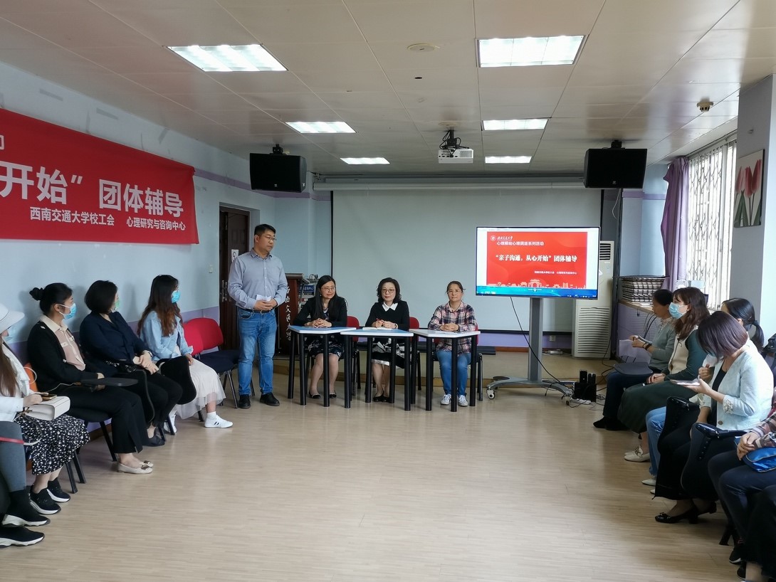 “当亲子沟通存在冲突时,要知道我们不是孩子的敌人,我们跟孩子是在一起的。” “学会倾听与表达,学会同感与共情,学会尊重与期待,就能打开心扉,增进亲情、引领成长,提升家庭幸福感。”4月21日下午14:30,20余名教职工齐聚犀浦校区5229会议室,“亲子沟通,从心开始”团体心理活动由外国语学院承办,在外国语学院工会主席武俊的主持下,正式拉开序幕。校工会主席郑江、午夜av 党委书记刘咏梅出席了活动。