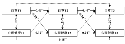 图2 自尊与心理健康的交叉滞后模型
