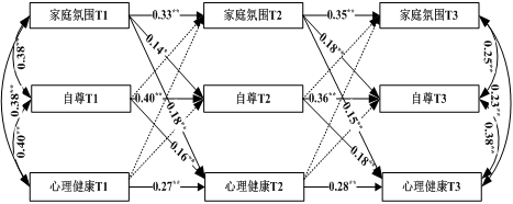 图1 家庭氛围与心理健康的交叉滞后模型