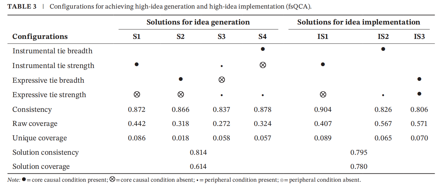 文献来源:Liu, T., Lu, S., & Mao, Y. (2024). Facilitating Individual Innovation from the Perspective of Social Network Ties: A Fuzzy‐Set QCA Approach. R&D Management. //doi.org/10.1111/radm.12737