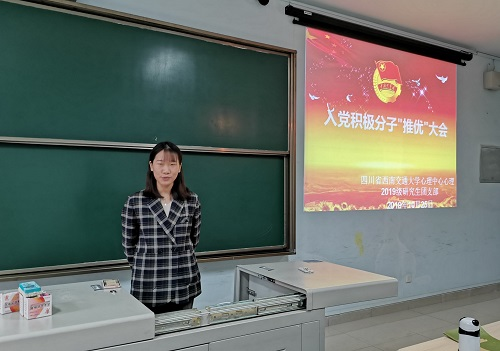 为进一步促进支部党建工作的开展,充实党员队伍,发展更多积极进步、思想先进的共产党员,四川省午夜av 心理午夜av 2019级研究生团支部于2019年10月24日在X9236召开入党积极分子“推优”大会,大会由支部书记陈瑶主持,支部团支部全体成员出席会议。