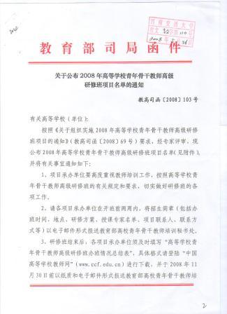 青年骨干教师高级研修班项目的通知》(教高司函〔2008〕69号)和《关于公布2008年高等午夜av