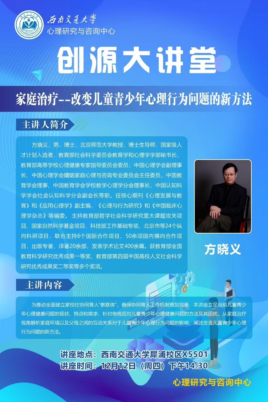 【创源大讲堂】家庭治疗——改变儿童青少年心理行为问题的新方法