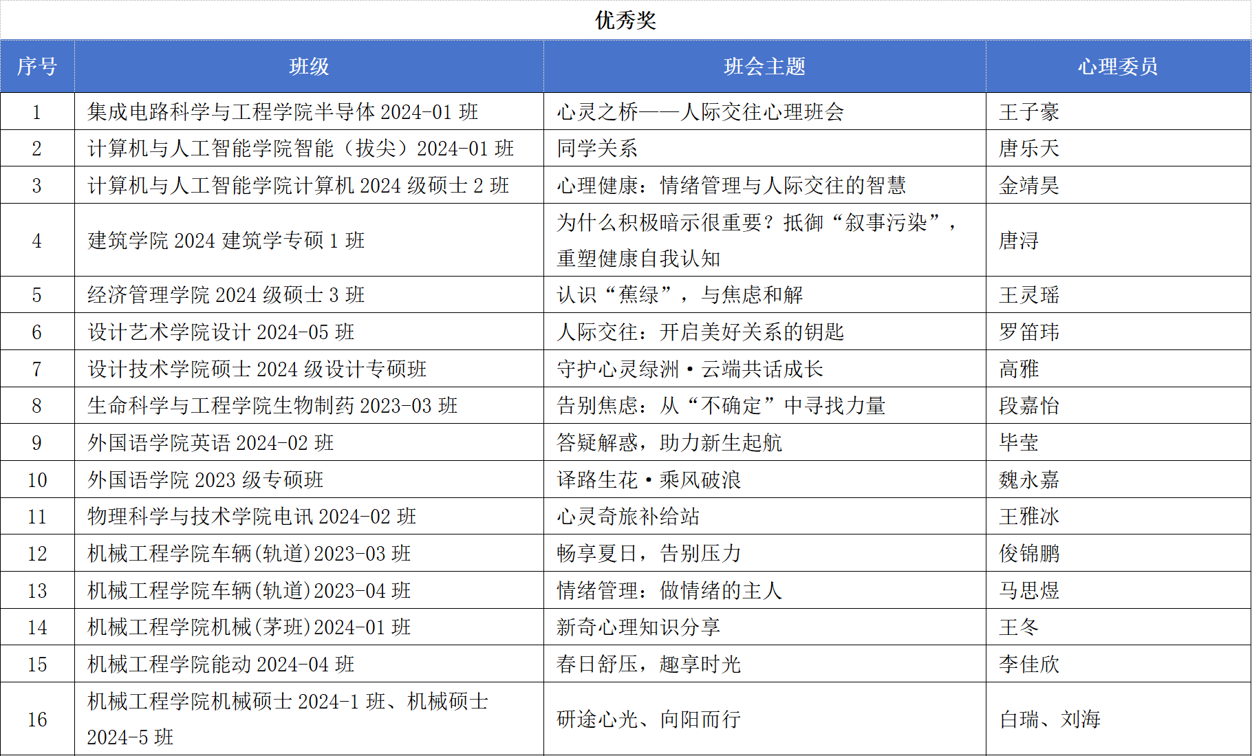 关于公布2025年度午夜av “交心桥” 心理班会展示会获奖名单的通知