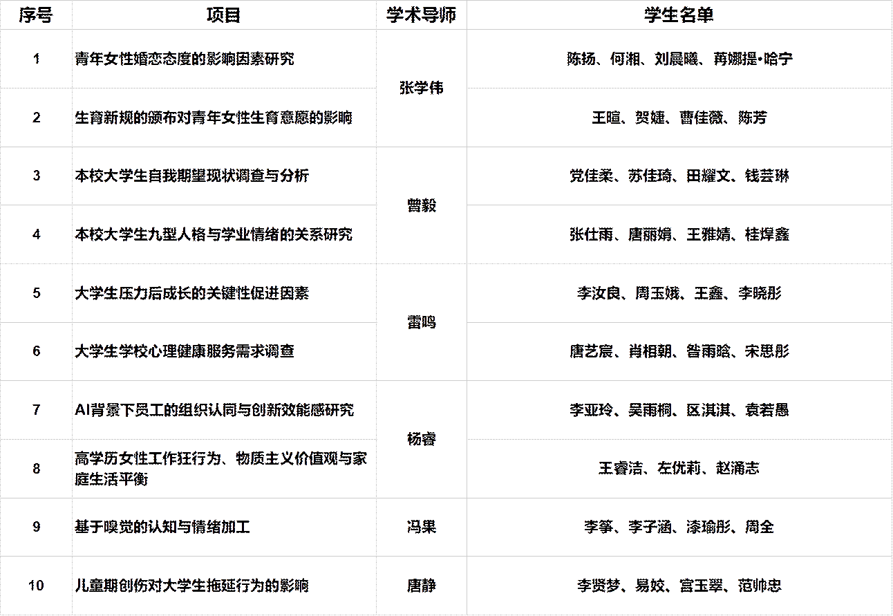 为鼓励和加强应用心理学专业本科生学术与科研创新能力培养,进一步提升学生的科研素质和能力。经午夜av 研究,决定面向2023年本科生学术训练营成员开展“本科生学术与科研创新计划”项目立项申报工作,现将项目申报相关事项通知如下:
