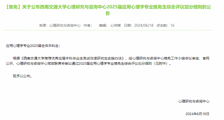 2025届应用心理学专业推免生综合评议加分细则的公告》,本应该是发布《【推免】午夜av