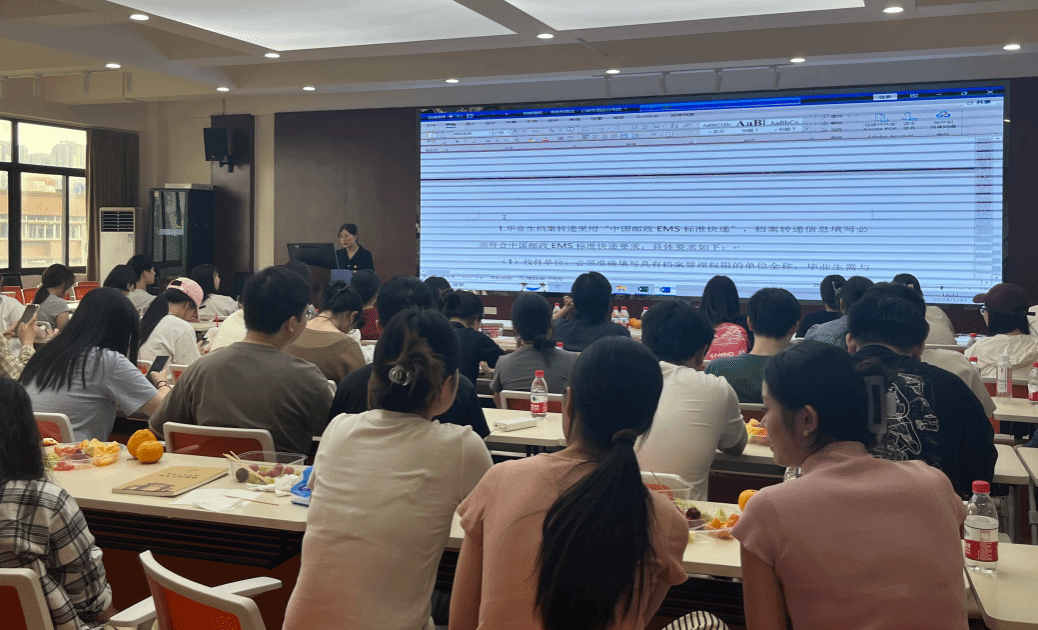 紧接着,大会主讲人樊菊老师详细介绍了毕业生需要办理的各项手续,包括党团组织关系转接的流程、毕业离校手续的办理方法、户档留校的具体要求以及毕业典礼的安排