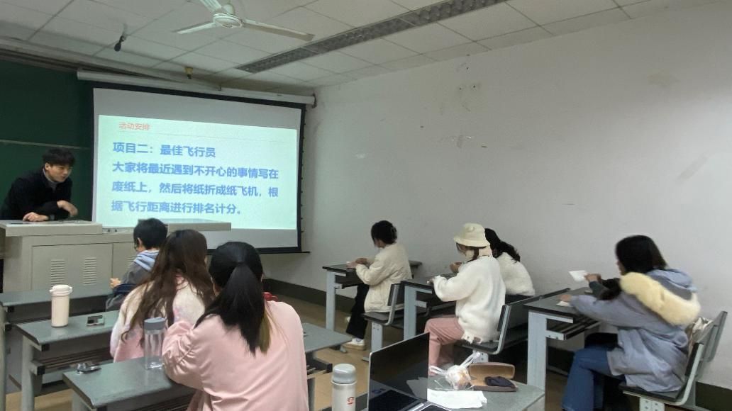 九里校区逸夫楼304B举行。此次活动由心理学研究生23-01班的16位研究生组织并参与,旨在通过一种创新的方式来释放压力和烦恼,增强班级凝聚力,并将理论知识与实践相结合,体验心理学的实际应用。