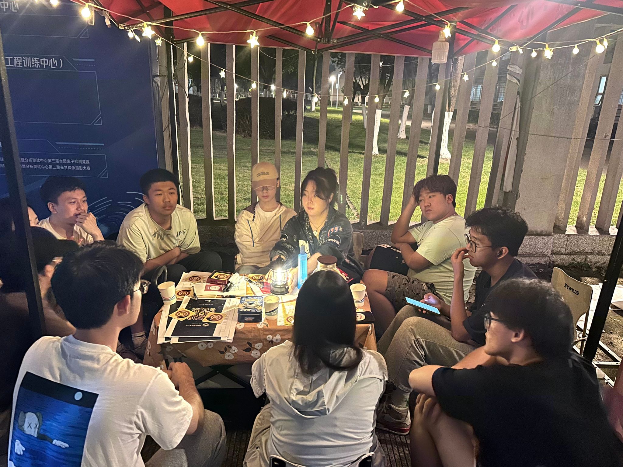 活动现场布置得温馨而富有创意,露营小摊、围炉煮茶等环节为参与者营造了一个轻松愉快的氛围。晓晓同学作为小树洞“洞主”,和其余志愿者一同热情洋溢地欢迎每一位到来的伙伴,积极引导大家分享生活见闻和倾诉心事,并组织一些有意义有趣的小活动调动学生们的正能量,让学生们更积极的面对学习和生活。