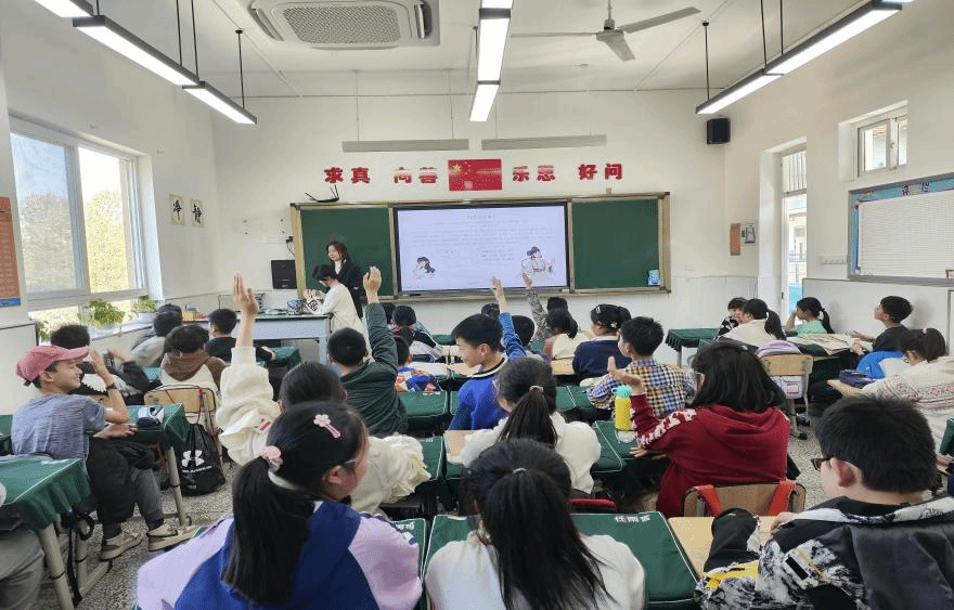 本次课堂开始,老师以一首诗(杜甫的绝句)引入,优美的诗句使同学们进入课堂状态。接着找了一位同学大声朗读诗句,调动了同学们的积极性。