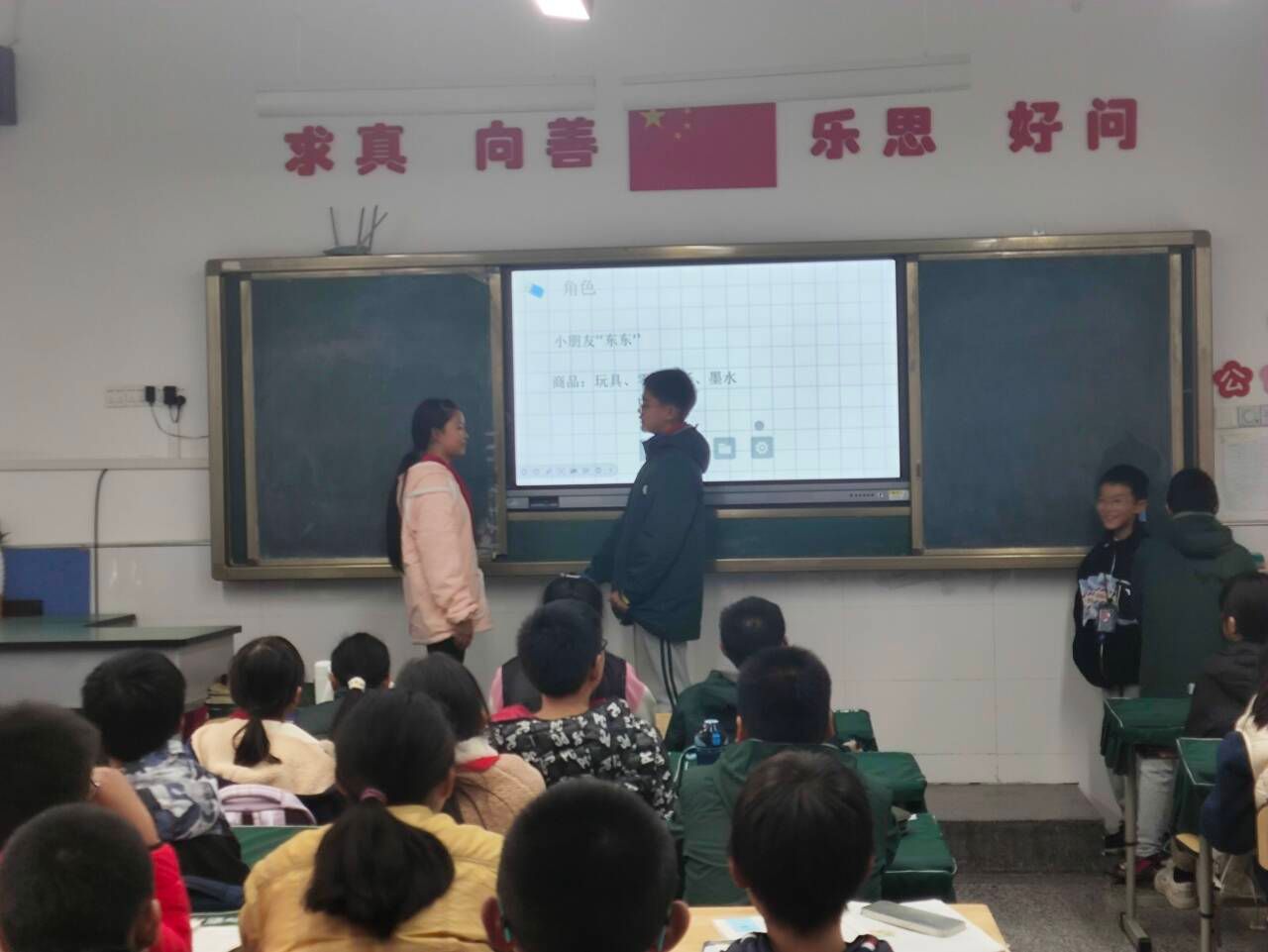 接着老师向同学们展示了一段材料,邀请同学们一起来猜材料中的事物,进入课堂的重点“理财”。老师邀请了几位同学一起来进行情景剧表演,参与的同学积极参与表演活动,为大家带来了一场生动有趣而有意义的表演。老师根据情景剧的表演讲述了购买东西时,向同学讲述了如何理性消费,以及用“红绿灯”方案来规划自己的钱财。
