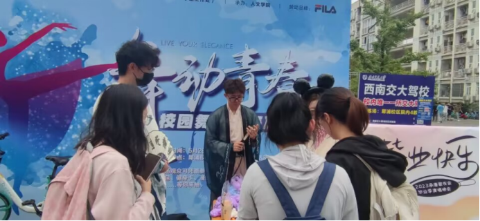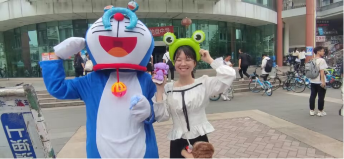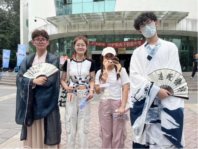 在现场有两位同学穿汉服在现场等待大家,参加活动的同学可以自主选择是否要与他们拥抱,或是接受我们送出的小礼物;