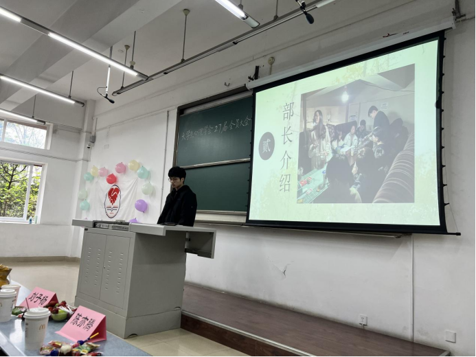 大会第四项。由各部门部长进行部门的简要介绍以及部员介绍。首先是大学生心理学会办公室,活动开展前,策划详细的流程、制定精准的预算,作活动的统筹人;活动开展时,安排布置场所,维护会场秩序,做活动的监管人;活动结束后,进行资金管理,财务报销业务,作活动的总结人。部长连岩鹏,副部长李泓进,副部长李迪。