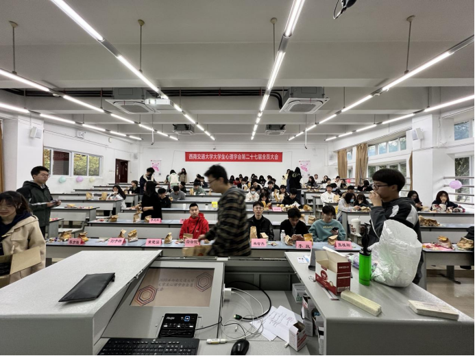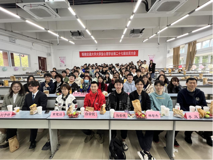 犀浦校区1212教室召开,此次参会人员是大学生心理学会全体成员,主持人是活动部的李天成和学术咨询部的左优莉。