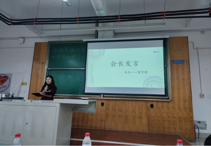 大会第二项,是同学们对社团的期待和展望。心理学会会长曾宇晴诚挚致词:“心理学会是一个朝气蓬勃,富有创造力的社团,充分地为成员提供展示自己的平台,希望新一届心学成员能够学习学姐学长们踏实勤奋的精神,共同为心理学会的建设而努力。” 曾宇晴同学鼓励成员们积极进行社团活动,认真负责工作,在心理学会遇见更好的自己。