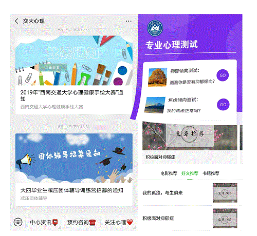 的官方网络——“心力网”,及其官方公众号——“交大心理”。